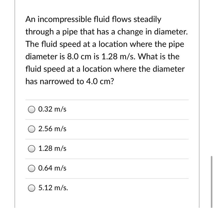 Solved An Incompressible Fluid Flows Steadily Through A Pipe Chegg Com